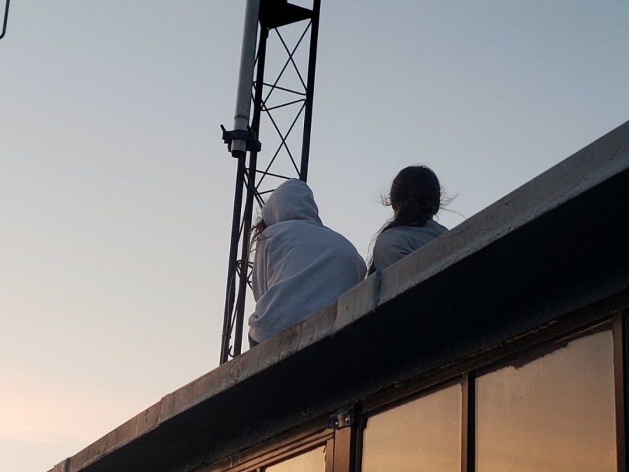 People had shown up for the sunset but they all stayed out on the deck some brave souls even ventured up on the roof.