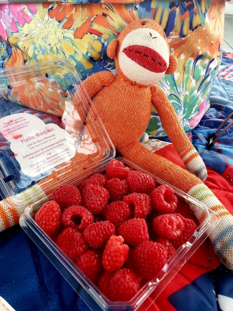 I had packed a picnic to go up on the parkway. With plenty of time, I decided to go on a hike first. After driving past mount Pisgah I ended up going up to the frying pan fire tower A short 1.5-mile round trip hike. The United States Forest Service built the 70-ft. tall tower in 1941 as a lookout for fires. It is the tallest USFS lookout tower in Western North Carolina, and it is now on the National Register of Historic Places. As I got near the peak I could hear voices from the top of the platform. But this could not be, as every time I have come up here you could climb the five flights of steps to the bottom of the platform and get an amazing view but the door to the top of the platform has been locked shut. Today was different, for the first time in my life the door to the top was open. And I pushed the door open with a loud clanging of metal and made my way onto the platform for the first time in my life. It was just as Moses had proclaimed on top of Pisgah behold the land of milk and honey. 360 degrees of milk and honey! The wind rushed through my hair bird were flying below me I was above the birds! I knew this may be a once in a lifetime opportunity but I had to have my picnic inside his room on top of the platform it was 4 walls of multi-pane windows about 10 by 10 It was a pretty steep climb back off that mountain but I hiked back down got my picnic supply and went back up. On the inside of the fire tower, I spread out a picnic blanket, Got Sox sat up. Sox is my traveling monkey companion. Made me a gin and tonic relaxed and read a chapter in my book as the sun dropped lower and lower.