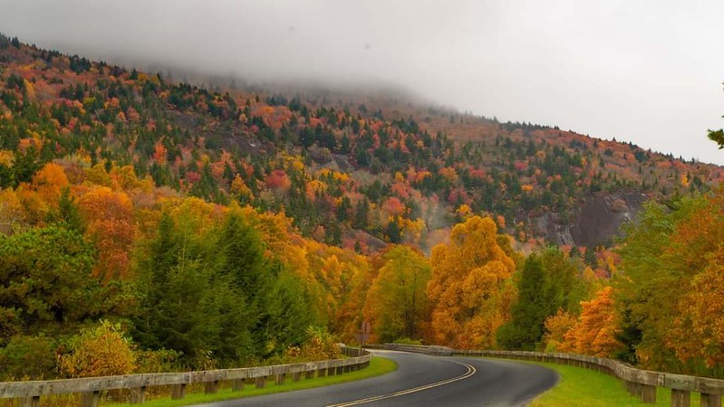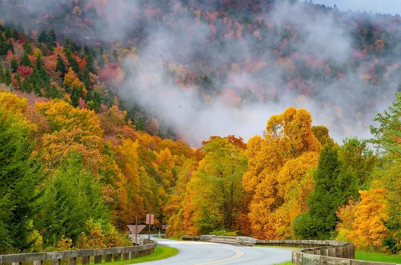They were calling for a rainy weekend and monday also. I took monday of just so I could enjoy a rainy day on the parkway. I was not disappointed the colors were at their peak and were fully saturated in the overcast sky. The fog was there at times but for the most part perfect conditions. The Blueridge parkway in North Carolina is one of the most beautiful places to take a fall drive!
