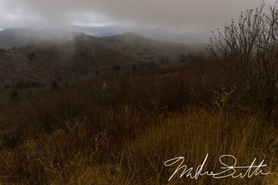 One more late-season camping trip I thought. I first wished to photograph the milky way but then found that the inner part of our Galaxy is not very visible in November, December, or January but still a starry night would be fun to photograph and I knew the perfect tree to use as a foreground. Black Balsam. The temperatures in Ashville were forecast in the mid-30s. Not too bad I thought.As I was packing the car I noticed the clouds moving in but I was already committed. As I drove past graveyard fields the drops began splattering on the windshield as I headed up the final stretch fog set in so thick you could swim in it. I took a nap in the car while I waited for it to pass. When I awoke a fierce wind was pushing the fog but no rain.