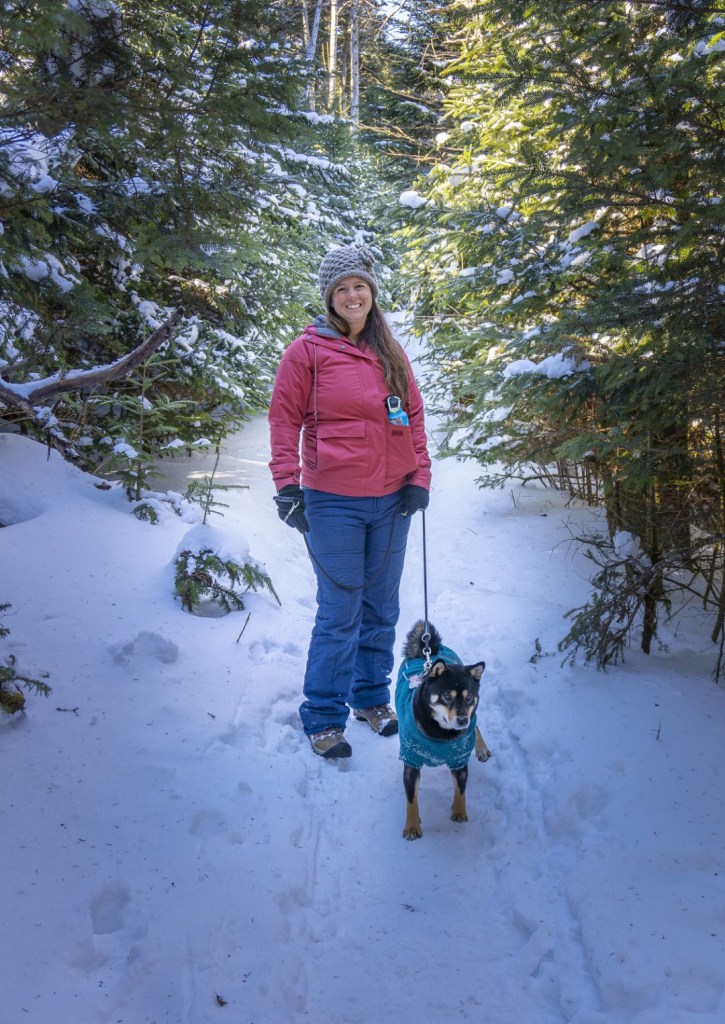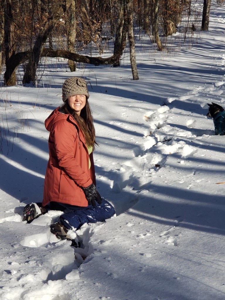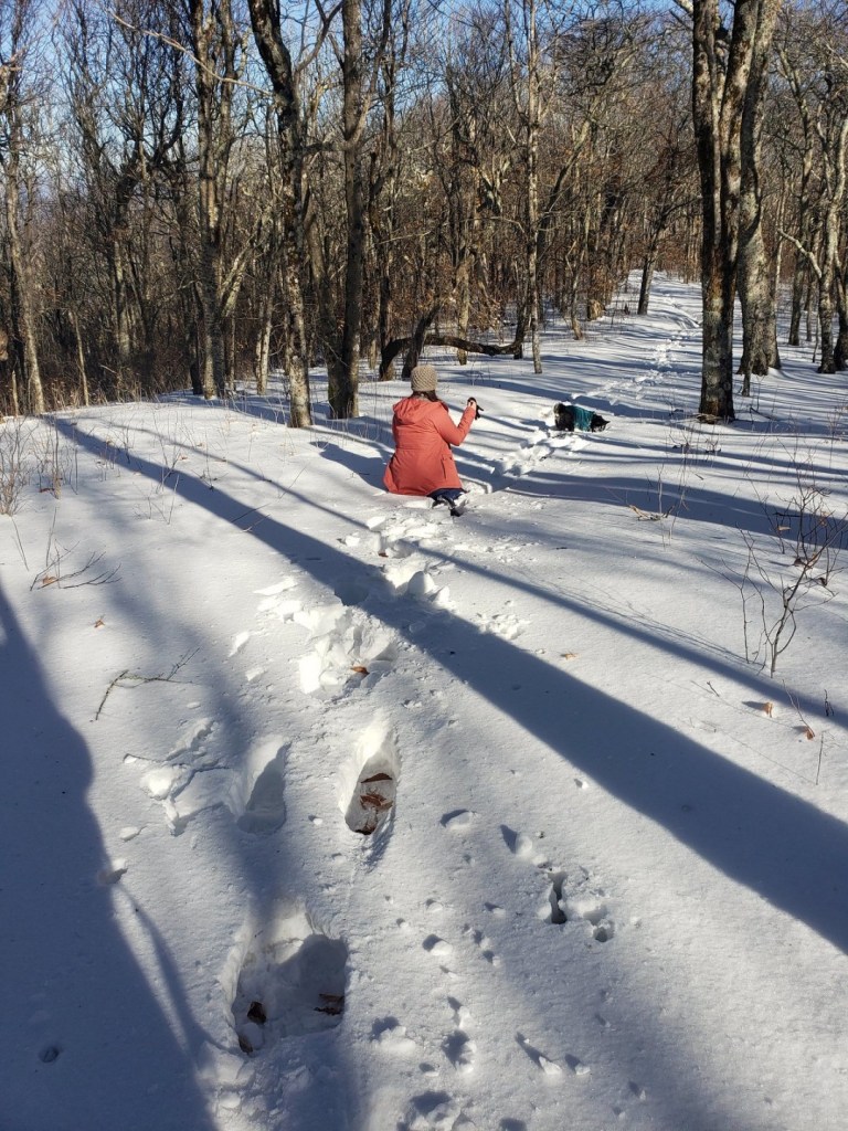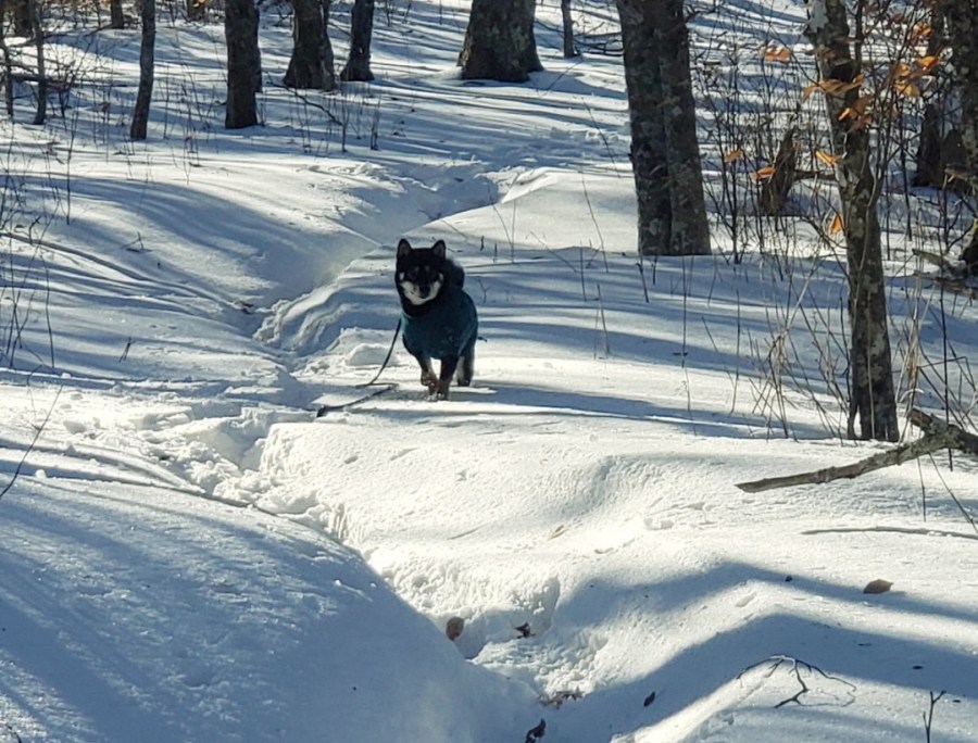 The snow seemed even deeper by the time made to the second bald. No one was around, we had the mountain to our-self, we decided to take Savannah off leash for a moment as soon as she bounced off the trail, we realized how deep the snow truly was! She was having a blast bouncing up down like a fox after prey! Emily took off after her but only made it a few feet before she was face first at least two foot of snow I thought maybe she was hurt but then I heard a deep joyous laugh that filled the mountain air as she would get up and try to made it further only to be flattened again in a few feet and more laughter!