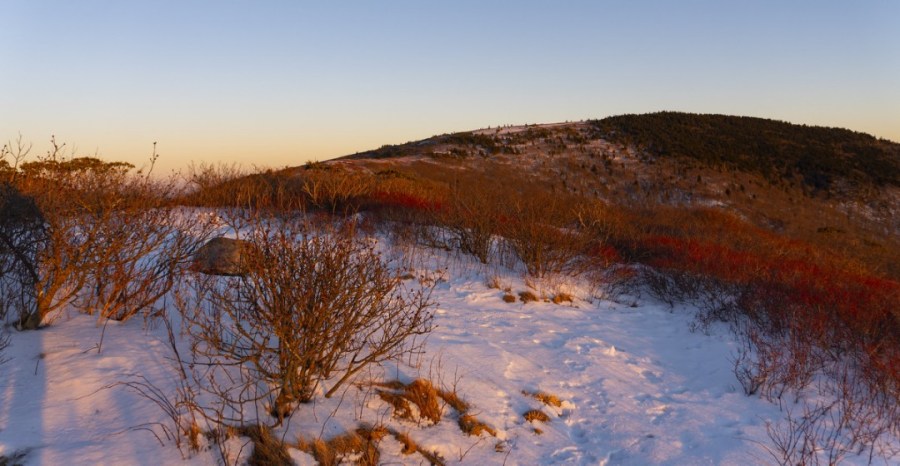 Now it was time to make it back up to the bald before sunset, we had worried going down the mountain with all that snow, how hard would be to come back up? But we were surprised how fast and easy we made back up.