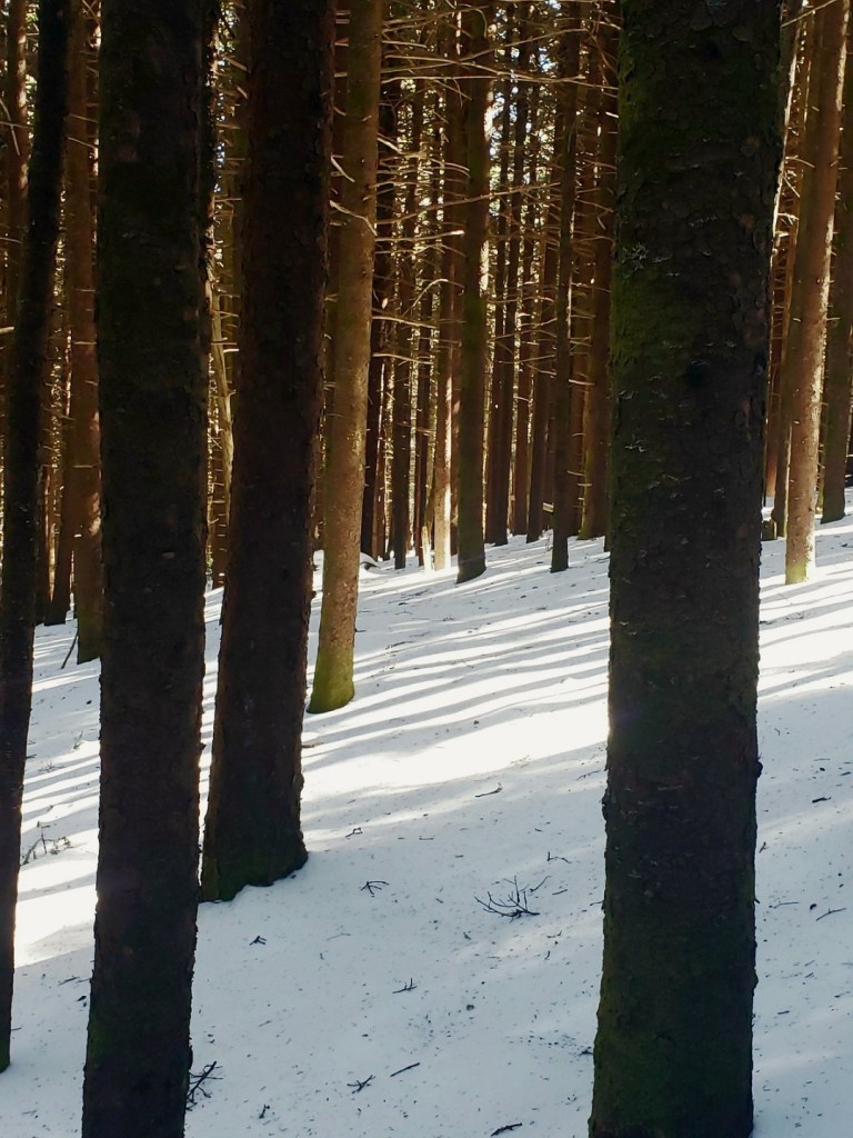 It was not till the last mile the woods began to fill with snowy magic. A lovey place the woods, only trees no underbrush and that poem popped back in my mind