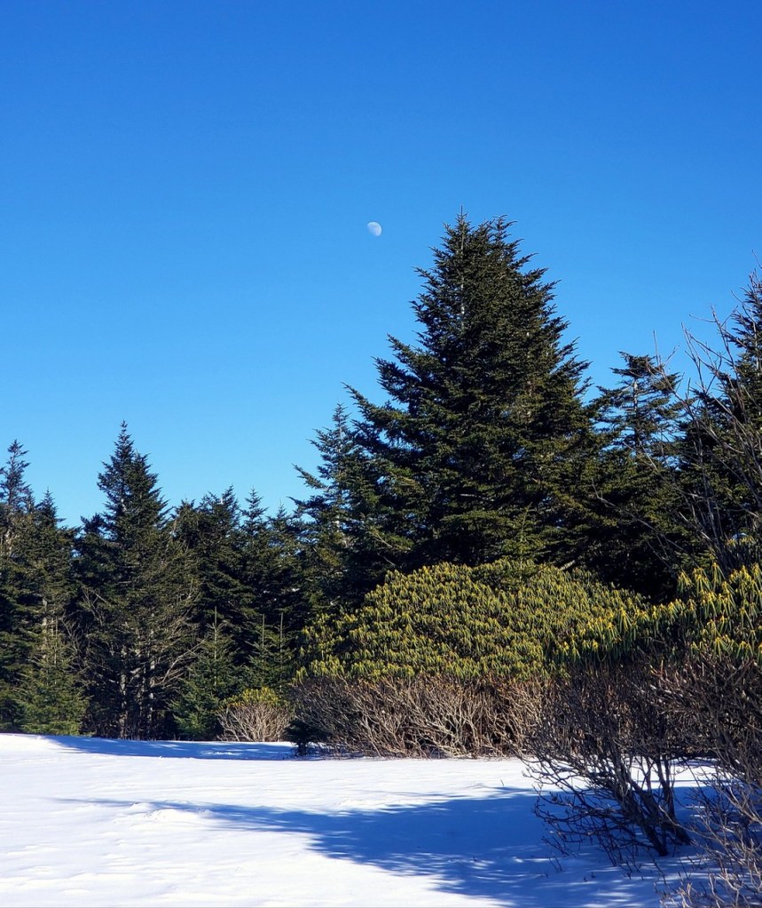 We were in the most beautiful winter wonderland in the entire galaxy and we knew it! Sometimes beautiful moments will slip pass you without your full realization. But not this time, as we lifted our joyous exaltations high up on the mountain, reveling in the moment! One minute we were stand in total awe of a perfect pine cone the next moment Emily was bolting off into the snow running, laughing, feeling alive!!! When we came to Grassy ridge, we decided take a left and follow the AT down to Stan Murray shelter I am glad we did for beautiful as the balds are The Roan has so much to offer and this side of the mountain offered even more snow, and yes, we fell more and we laughed more every time.