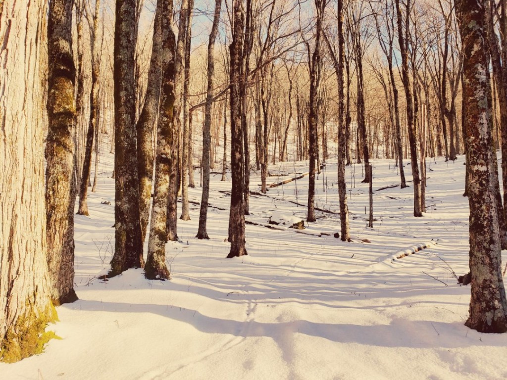 One long frozen section of steep downhill Emily was a little in front I suddenly heard her cry out I thought she had fell but soon seen she had decided to lay on her back and sled off the mountain laughing with all the joy of a hundred eight year old’s on their first snow day all the way down, as Savannah hopped back and forth across her. It looked so fun, I tried also but my backpack hindered me from the speeds she had obtained. By the time we made it back to the first bald Pentax girl had caught up with us and walked off the mountain with us.