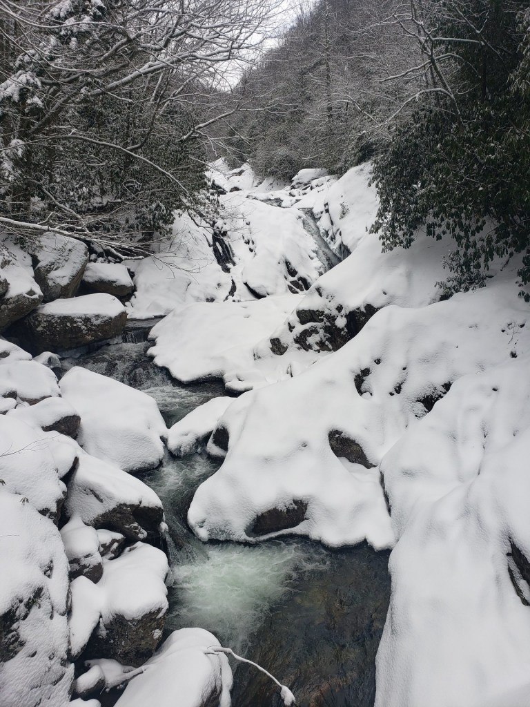 There were quite a few people on the parkway hiking, sledding, cross country sking. We had a great hike very icy under the snow near Devils courthouse. We had a wonderful ride home enjoying all of the beauty the world had graced us with. Memorys that will last a lifetime.