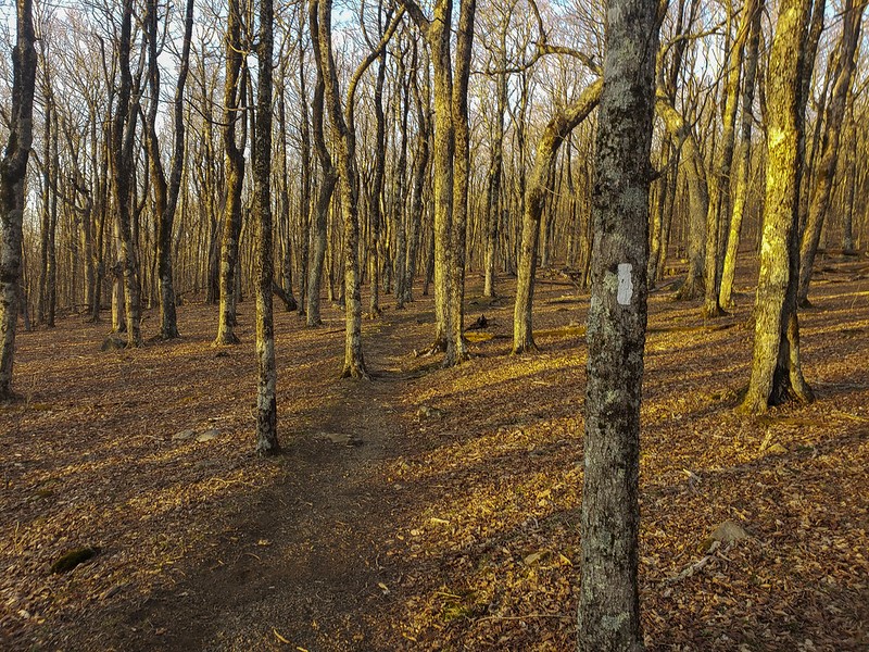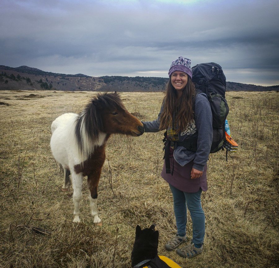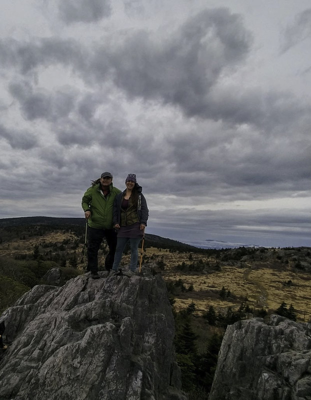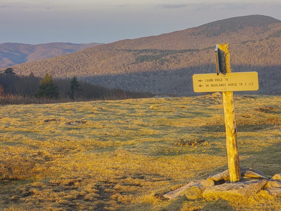 We were driving the back-roads of Virginia talking, enjoying a beautiful spring afternoon blindly following the GPS voice, when without warning, Veronica the GPS voice told me to take a turn that did not exist. I looked at the map, I drove down the road a bit. looked up and down the road, I looked at the map again, the turn still did not exist. Time to take navigation into our own hands and make our own plan. Miss Google sassy pants in her sexy English racing voice was insistent with her recalculating demands but we carried on. Recalculated would become the theme for the weekend. When we arrived at Grayson Highland state park a sign at the parking lot proclaimed “absolutely no parking without reservations”. I tried calling the park. After going thru a whole menu of pressing 1 for English, pressing 2, for this pressing 89 for that, I was finally in touch with a very rude lady who informed us if had not made reservations before five we would not be parking here! Recalculating! We ended up driving a little over ten miles to park at Elk Garden. I had the perfect loop hike planned that had started and ended at the overnight parking lot. But one of mine and Emily’s greatest strengths is flexibility. We recalculated! And we ended up here at Elk Garden Trail-head.