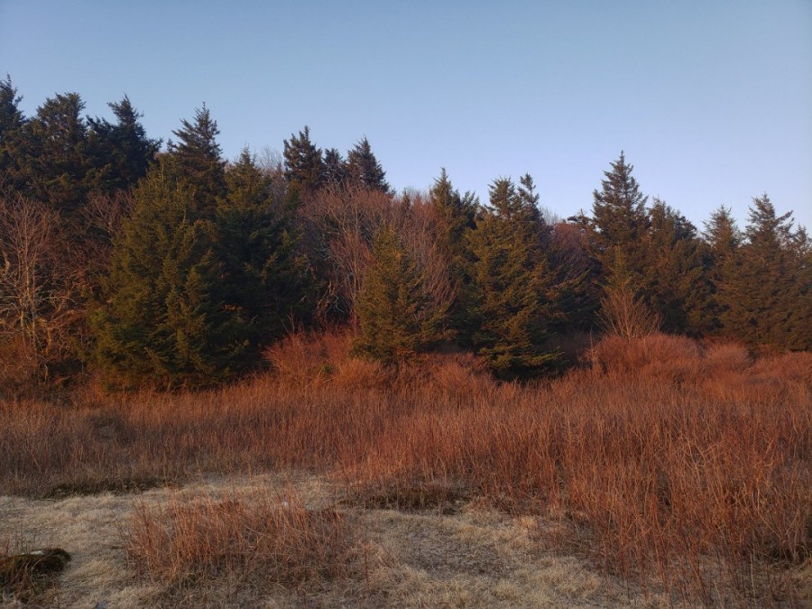 The shadows were already quite long as we heaved our packs on to our backs and along with Savannah our fearless companion, we began our adventure hiking over rolling pastures and with flush of robins at the forest edge we were walking into a beautiful sunset