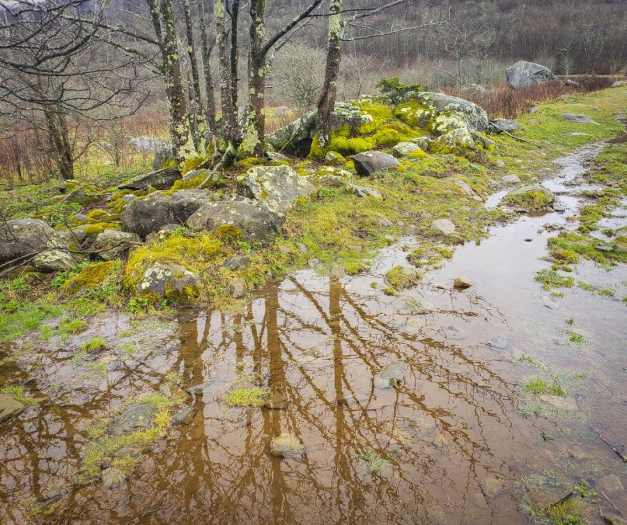 As lovely as this valley is, we have miles to put behind us before tonight’s camp. Even before we get packed up the clouds have begun to pepper the horizon. Still, it is a beautiful morning as we head up the mountain. Our first stop a spring flowing out of the bald.
