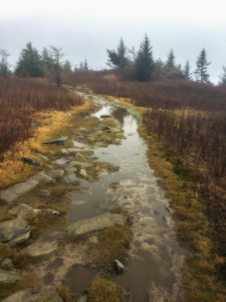 The rain was building as we headed back. Emily had left her rain gear in her pack and took off in a dash to the shelter. I walked and enjoyed the rain. As I hiked past one of the boy scout leaders he proclaimed sarcastically “nice day out” For me out of a million places I could have been. I could not think of one place I would rather be than on top of this mountain walking in the rain