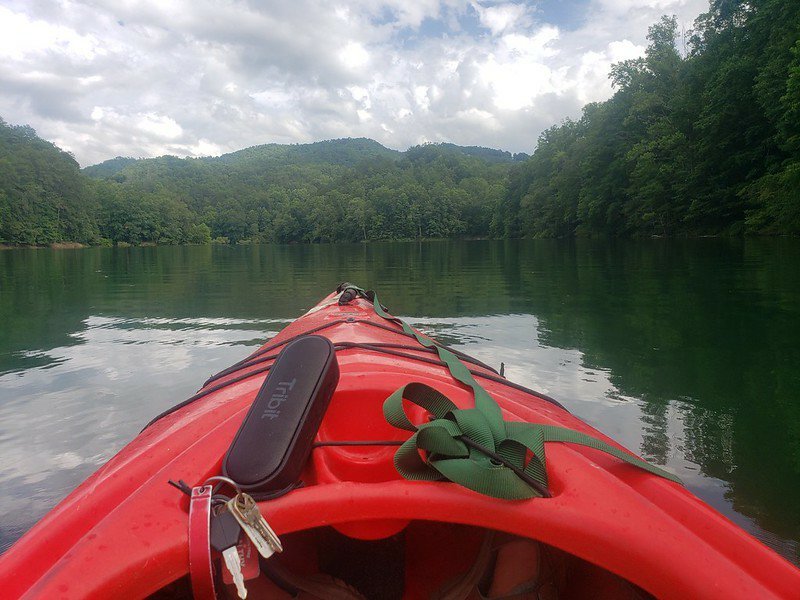 Life is going by way too fast I can not wsit for weekends to have adventures. My thought was to try Lake Fontana, according to Google maps it was only a hour away. I loaded my kayak on the top of the car that morning before I left for work I have seen pictures of kayaks melting on cars in the sun so I tried to park in the deck. Talking about a tight fit! It rubbed the top of the deck but not too hard.