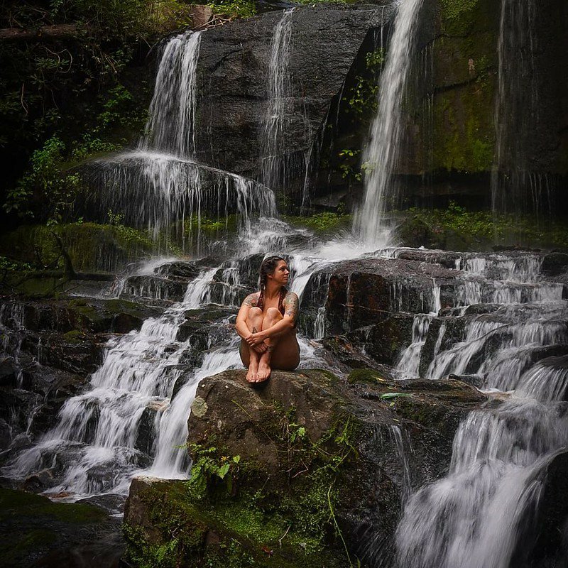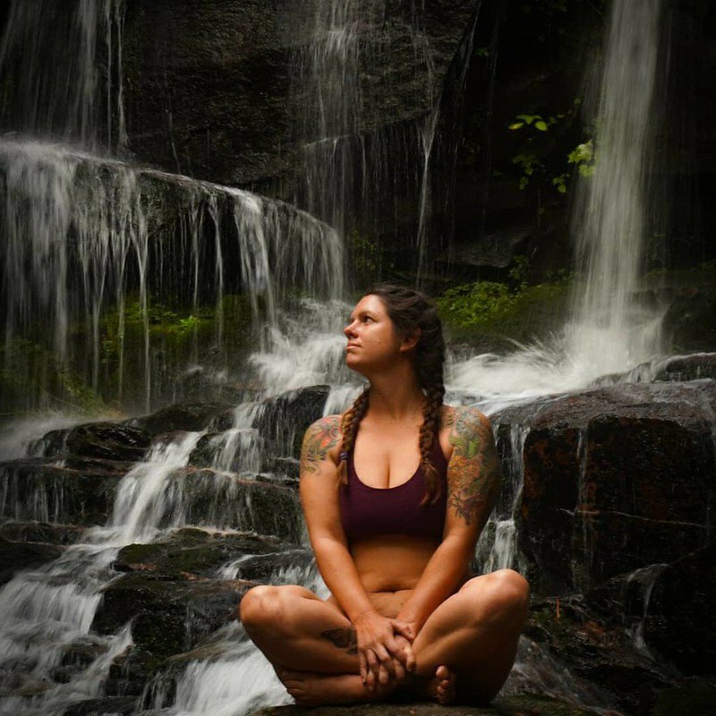 Soon it levels off somewhat and Emily is humming country tunes while Savannah the best hiking dog ever follows faithfully behind. We were conquering mountains, fueled by the sweetest, most perfectly, ripeed wild muscadines that were littering the trail. It was a great day to be alive! The first day we hiked to Virginia Hawken’s waterfall it was easily one of the most beautiful I have ever seen.
