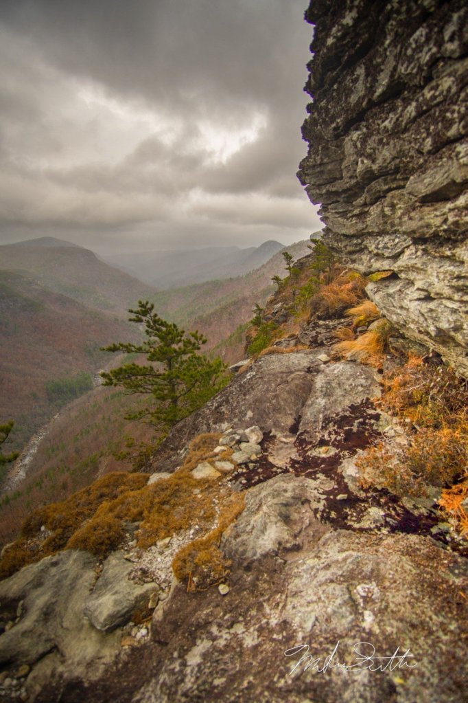 Then as we made our way around the Carolia wall the sky darkened, the winds picked up, sometimes thirty mile an hour gusts as we walked along a ledge with several hundred feet below us before we would bounce of the next rock.