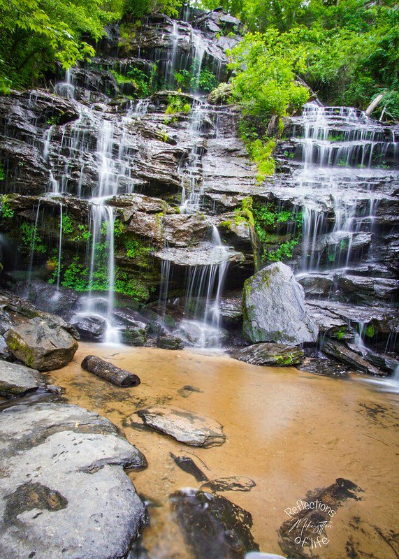 Same park different parking lot Issaqueena falls. Very short hike to a viewing platform. Very rugged hike to go past the viewing platform to the bottom of the falls. The reward, the best shower ever.