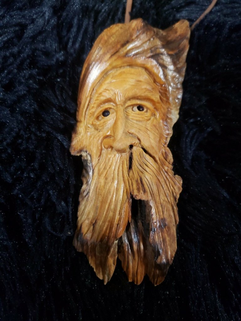 Stopped by a convenience store and found this cool hand carved wood spirit carved into a pine knot