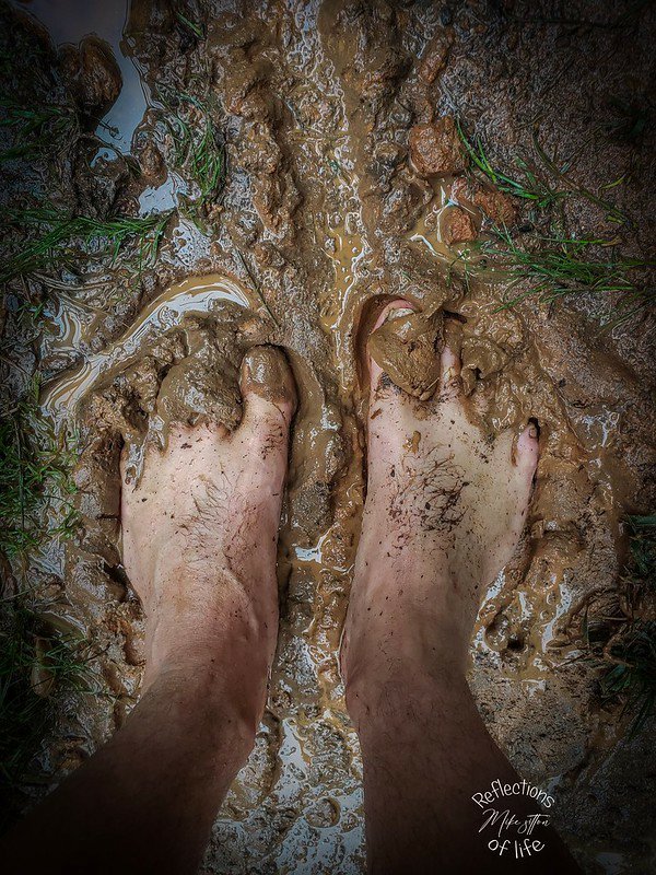 After dragging the trash can back thru the garden, then sloshing back and forth, unloading grocery’s, in one place the turf had transformed into a velvety, red clay mud, churned into the consistency of creamed butter