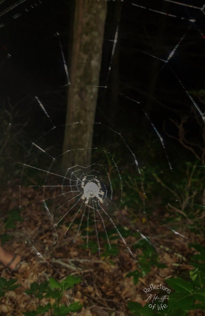 We came across a giant spider, Charley. Charley was happy to see us, we could tell from his smile.
