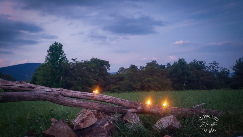 We settled in for a relaxing evening while I made avocado, soppressata and mozzarella on pita bread sandwiches. We ate while watching the colors of the sunset twisting, contorting, the end of the day fighting the night creating a lava lamp in the sky. An eerie quietness as the darkness fell around us. Emily had just mentioned there were no fireflies, she had spoken too soon as before long they were hundreds of lights twinkling in the trees around the edge, soon spilling onto the grasses of the pasture. The ghostly ballerinas of the night put on a show to rival the best Broadway shows. We took out pieces of paper and wrote down our wishes for summer, for life. We held the papers over the candles letting the flame consume, the smoke carrying our desires to the. A simple ritual more for setting intention than for magic. (Well maybe that is the magic?)