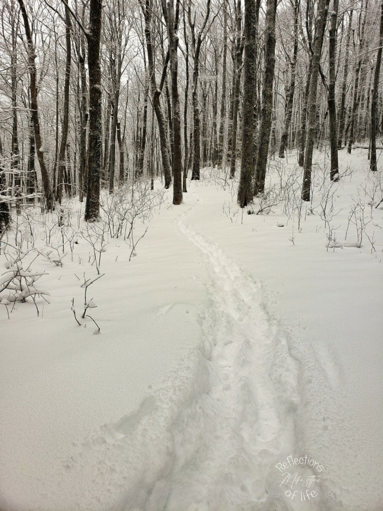 It was overcast as we headed out into the frozen winter wonderland, the forecast high on the mountain yesterday was 19° (I do not believe it ever made it?), A foggy mist had frozen to the branch’s, creating a crystal chandelier palace. We were in the kingdom of beautiful now.